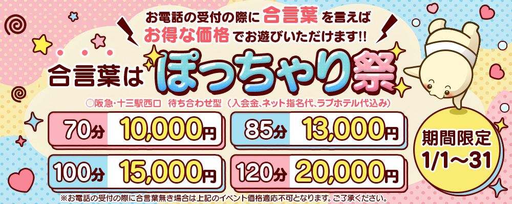 ※お電話の際に【アイコトバ】無き場合は上記のイベント価格適応不可となりますので、ご了承くださいませ。